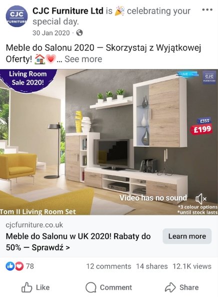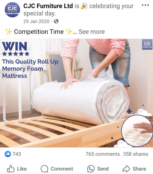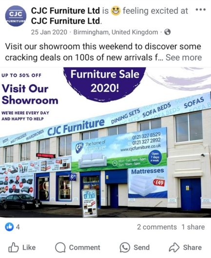 Everything is designed to maximise visibility and engagement around CJC Furniture.