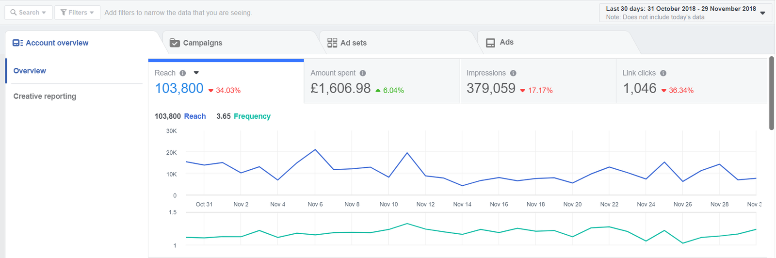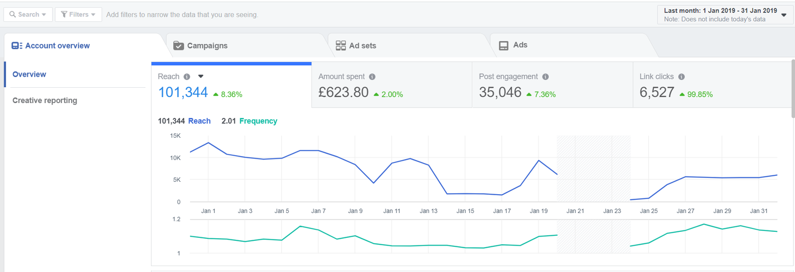 Reach was 103,800, with just over 1,000 link clicks to the site.
