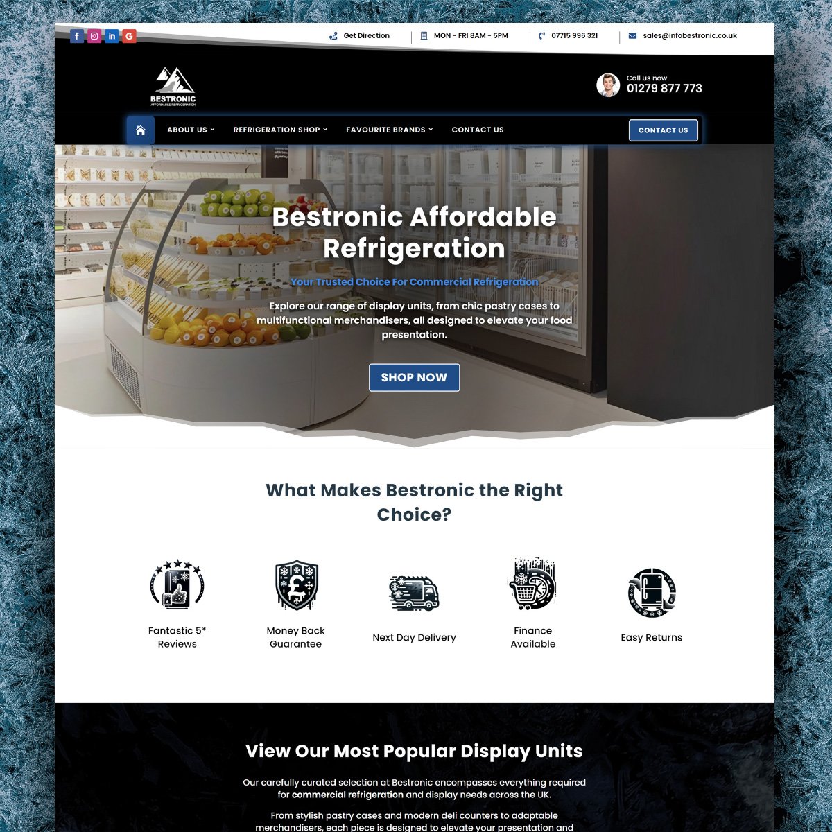 Bestronic had tried several providers but weren’t seeing results. They needed a modern, fast and search-optimised website that clearly presented fridges, freezers and display units and made enquiring easy.