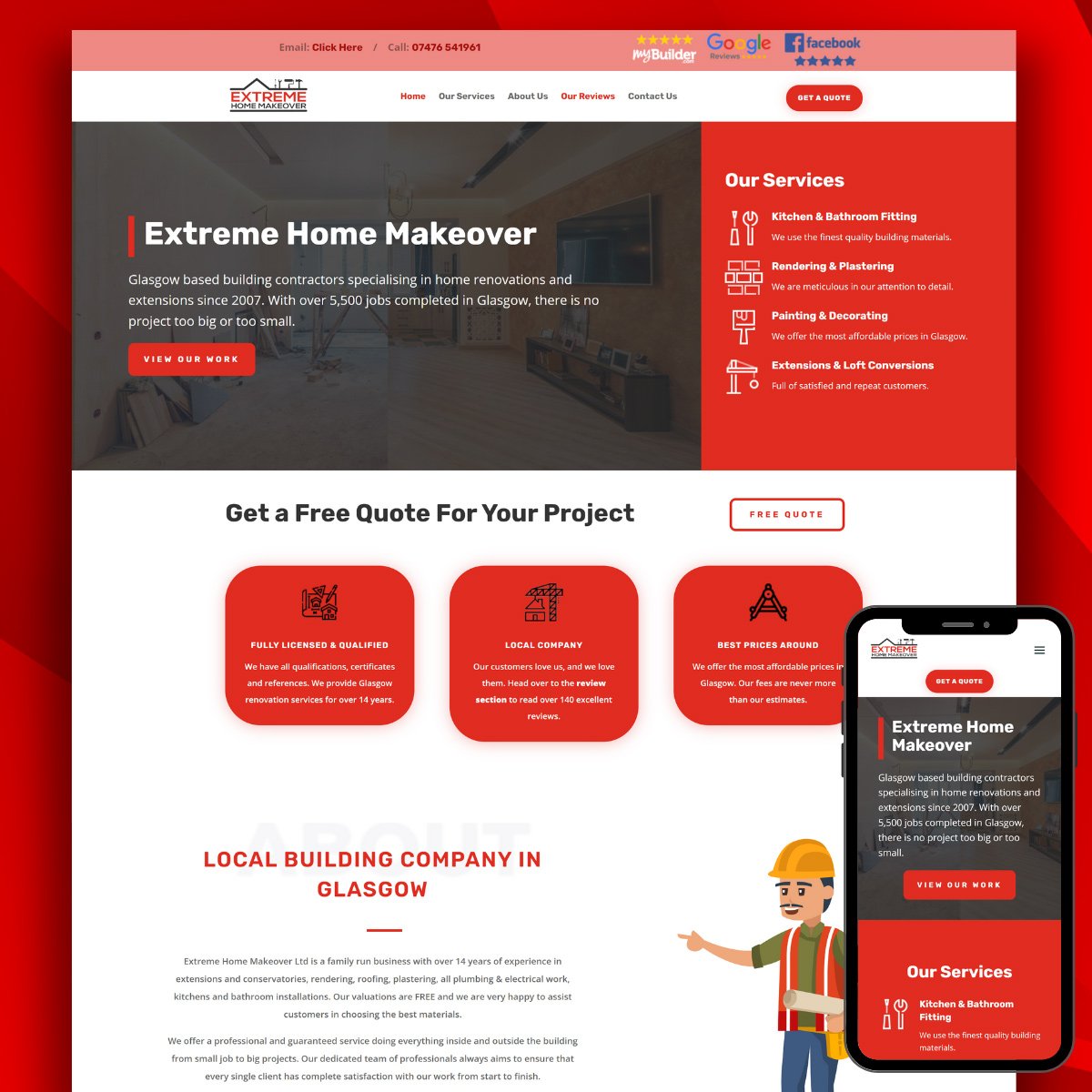By building SEO-friendly content and optimising every page, the site was designed to rank strongly in organic search results, helping Extreme Home Makeover reach more potential customers without relying on paid leads.